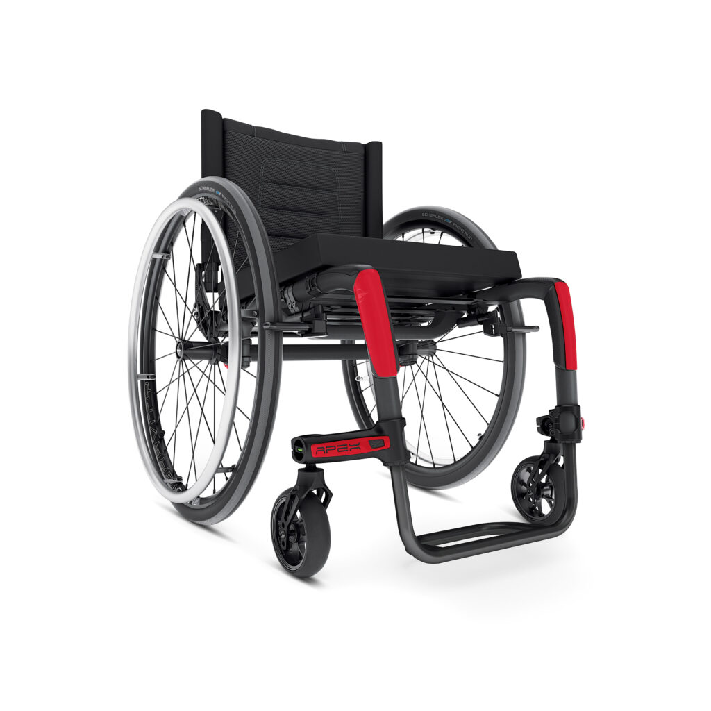The Apex wheelchair, with its carbon-fibre construction, is one of the lightest rigid-frame models in the world. It weighs only 4.2 kg thanks to its cutting-edge technology. Moreover, it is characterised by high strength and durability. The design is fully based on a modular structure. Its laser-etched markings allow users to easily adjust key components and specify their exact positioning. The rear bar, which supports rigidity, optimises ride performance.