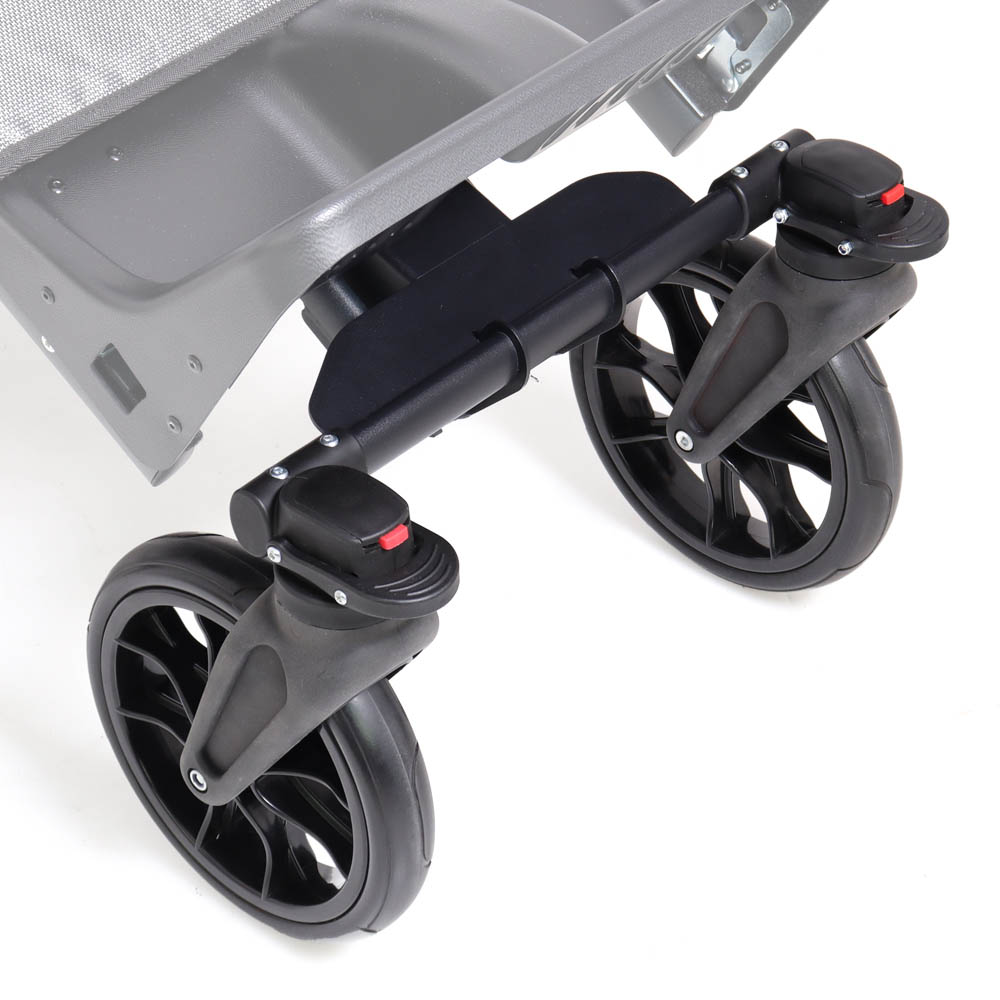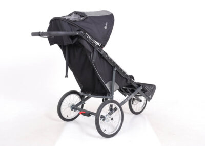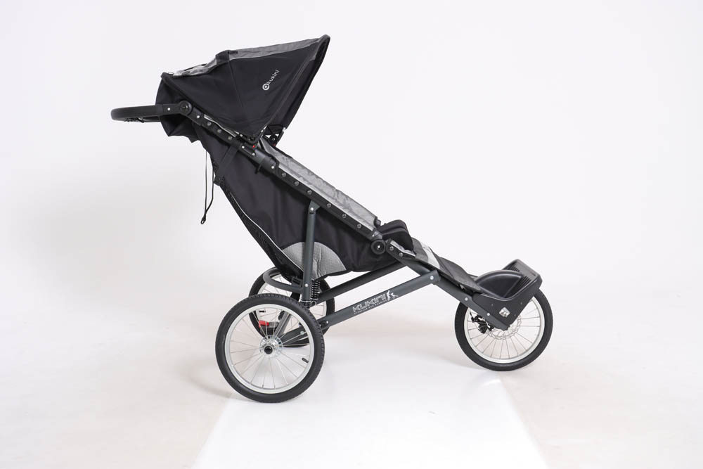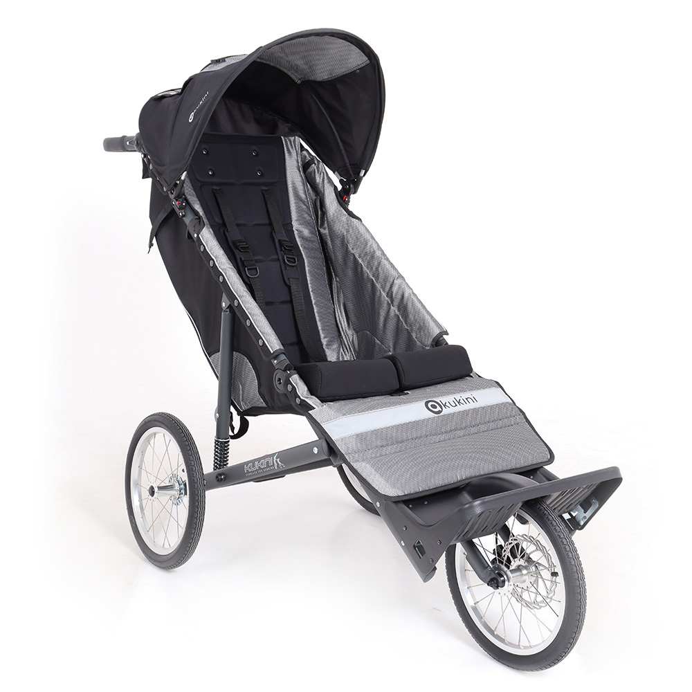Aluminium frame of the stroller with reflective elements makes the stroller safe and comfortable for your child while exploring the city or forest areas. KUKINI™ is equipped with a rear shock absorbing system and 16-inch inflatable spoked wheels, which make riding on uneven terrain a pleasure for both a child and caregiver.
