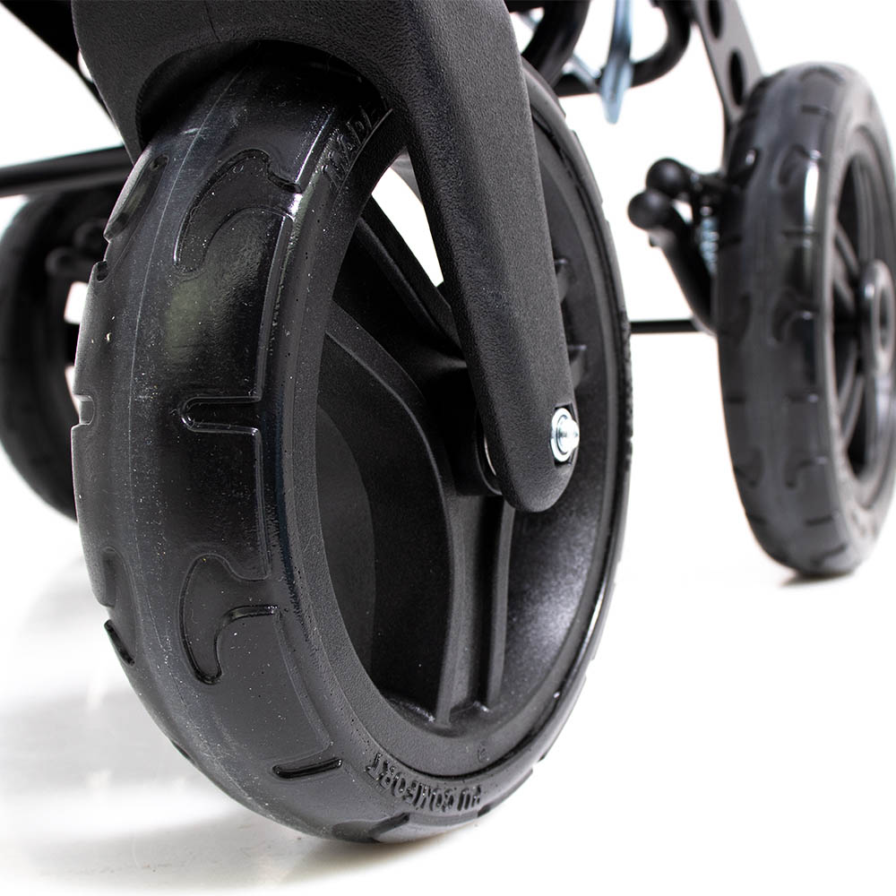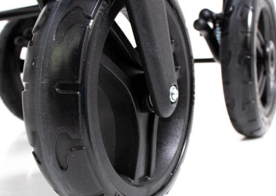 RACER EVO® stroller is equipped with swivel front wheels, thanks to which parents do not have a problem with using this device. This change is really beneficial due to the fact the buggy does not have to be lifted in order to overcome uneven grounds.