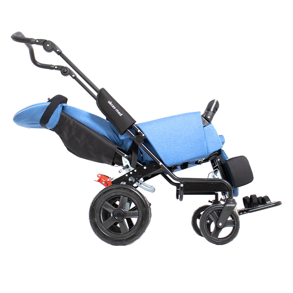 Furthermore, front wheels are equipped with fixed direction of movement which is handy regarding uneven surfaces. New footrest adjustment facilitates the use of this rehab stroller and modern design does not suggest that it is created for people who need special care.