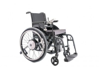 Available in the E35 or E36 version, the Alber Efix is a great solution for those needing occasional powered mobility. The Alber Efix attaches to your current wheelchair meaning you only use it when needed. Its unique jack up function make attaching the drive wheels stress free. The batteries and joystick are easily detachable and can be stored separately. With a range of up to 16 miles on the E36 version, the Alber Efix won’t let you down.