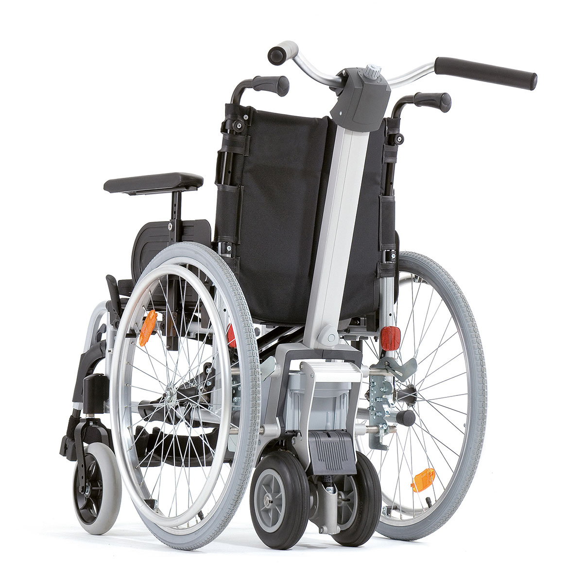 Ease of use is the Viamobil eco biggest plus. Easy to remove and attach, the Viamobil Eco is a market leader in attendant controlled add ons. Smart spring suspension and automatic braking make it a breeze to use. The Viamobil Eco will fit most manual wheelchairs, just contact your product advisor for guidance.