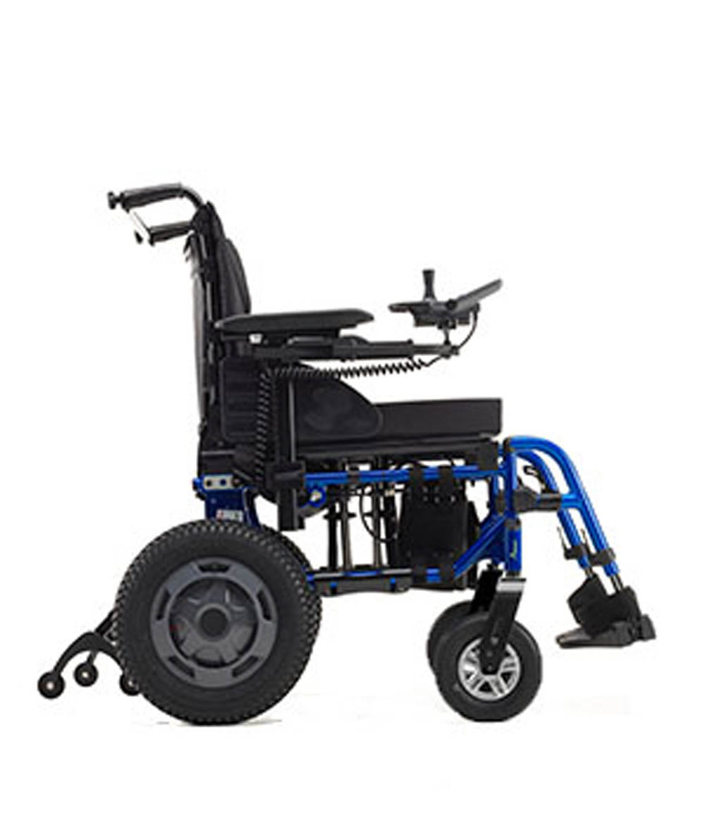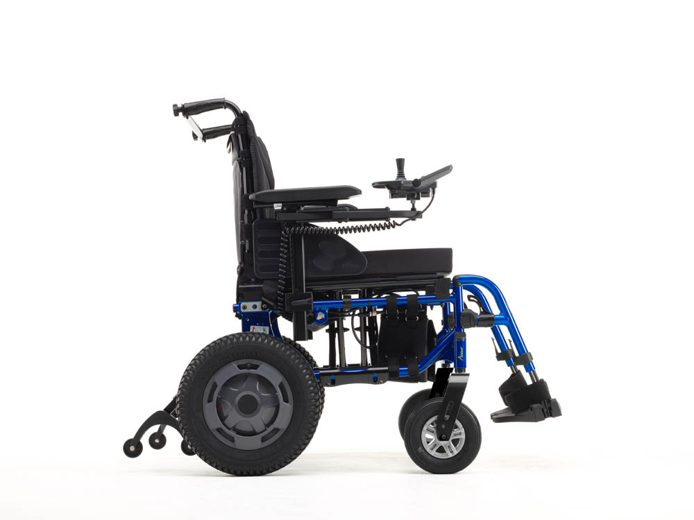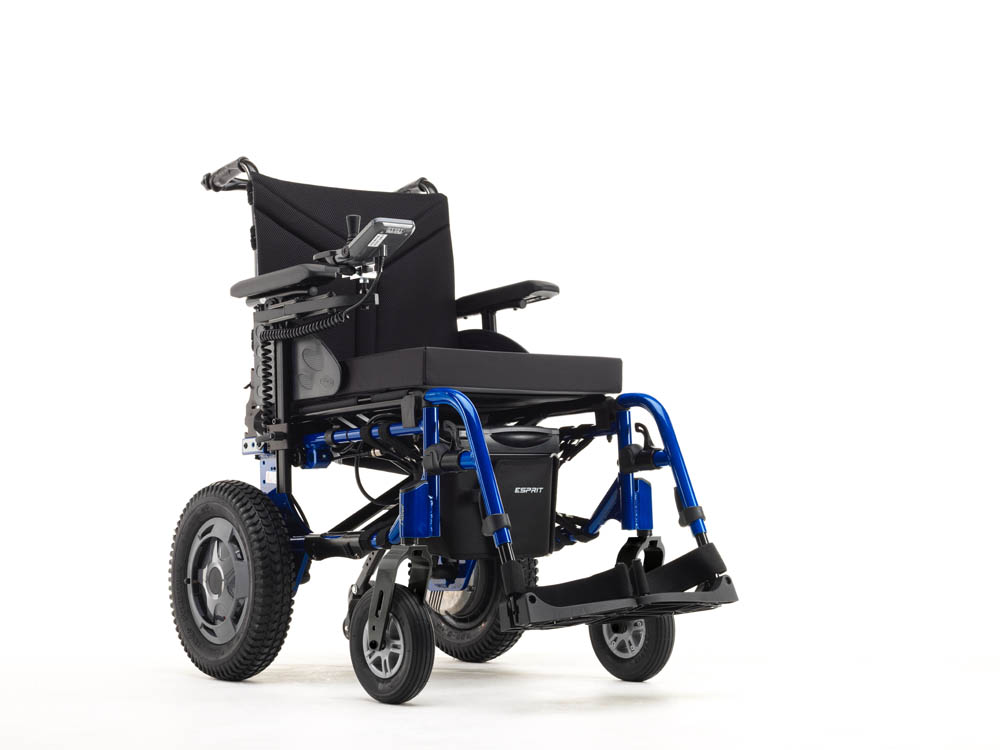 For those that need a foldable, transportable powered wheelchair, the Esprit Action offers the perfect solution. Equipped with a gyro, the chair senses degree of turn and adjust the speed accordingly and it can even detect if the chair is on a tilt and behave accordingly. The rear wheels are positioned as far forward as possible, ensuring good traction and a tight turning circle. Cross compatible with the Action range, the Esprit Action is a great compromise between form and function. Indoor/Outdoor rear wheel drive