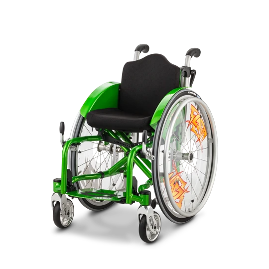 With its folding frame and option of a solid seating system, the Meyra Flash is a great option for those needing compact design and a great ergonomic propulsion option. Highly adjustable with good growth possibilities, the Meyra Flash is a great chair in this segment. Crash tested.