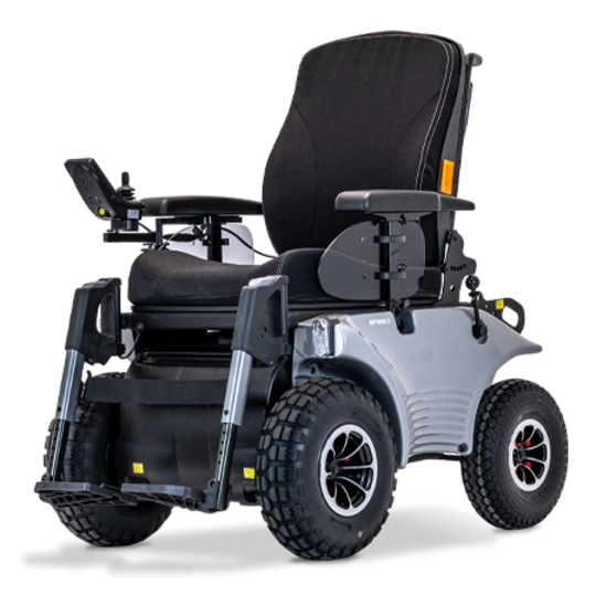 A cross between a powered wheelchair and an all-terrain vehicle, the Meyra Optimus 2 revels and excels in all environments. Powered rear wheel steering makes the chair very stable on all surfaces. Comfortable seat options ensure a comfortable experience no matter what is thrown at the chair. Outdoor Front wheel Drive.