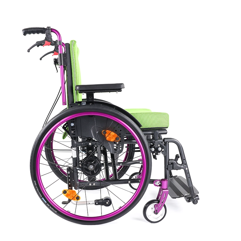 Available up to an XXL version of 20”, the Jump Beta is a great chair for solidity and ease of propulsion. Comes with the usual colour and accessory options you’d expect from Sorg. The option of a solid seat and backrest makes the Jump Alpha a great choice for those kids needing some extra stability. Crash tested.
